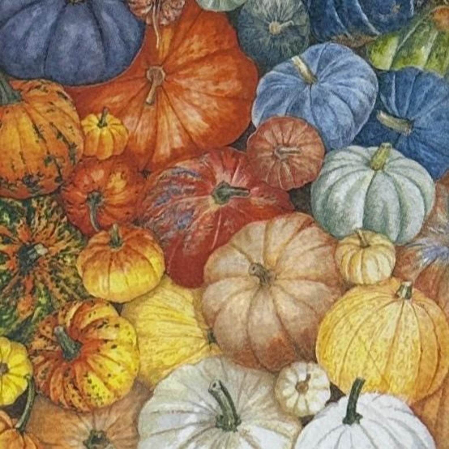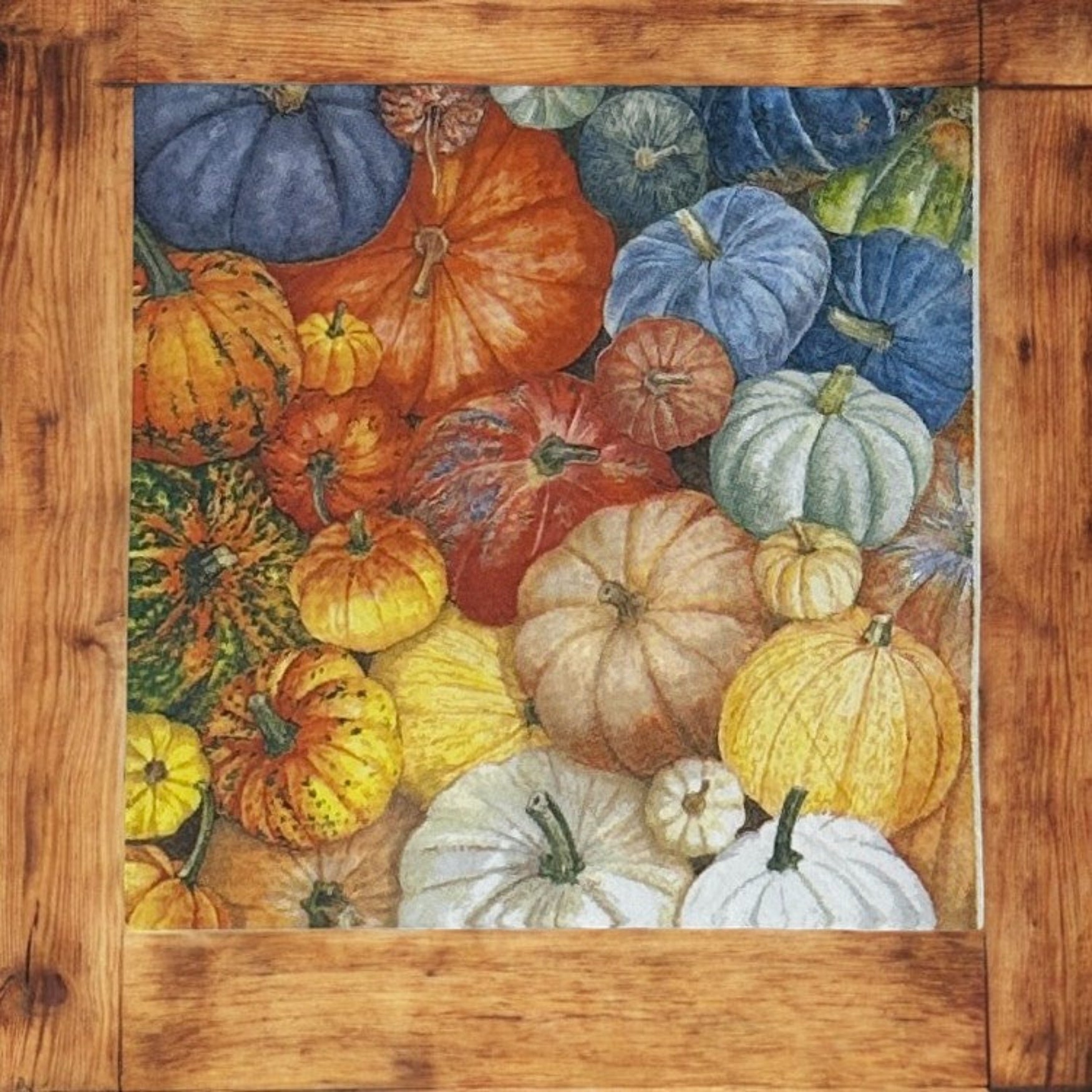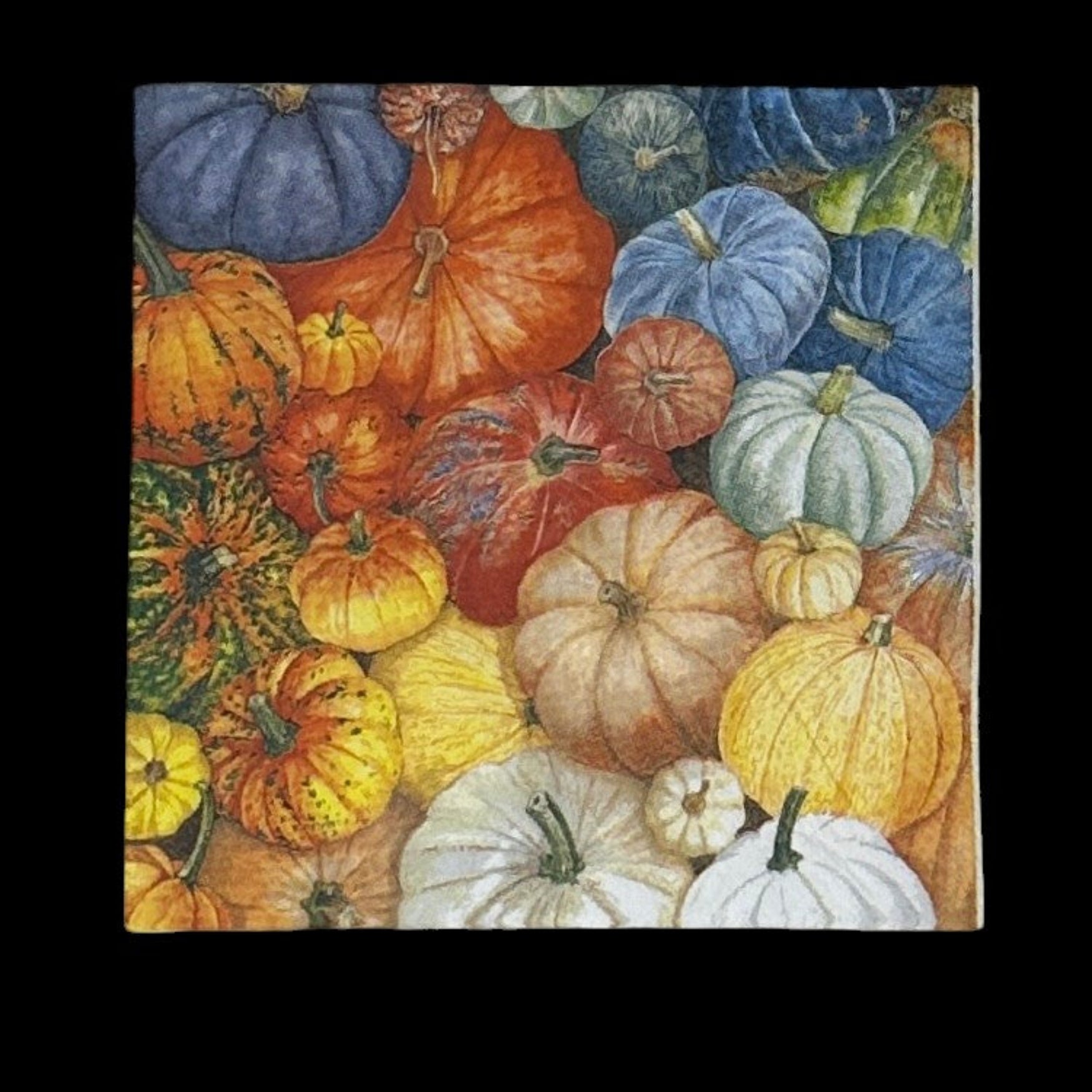🎃 Stacked Pumpkin Cocktail Size Decoupage Napkins – Orange, Blue, Yellow & Green Pumpkins – Fall Paper Napkins by The Farmhouse Rachel Ashwell for Crafts, Journaling & Mixed Media