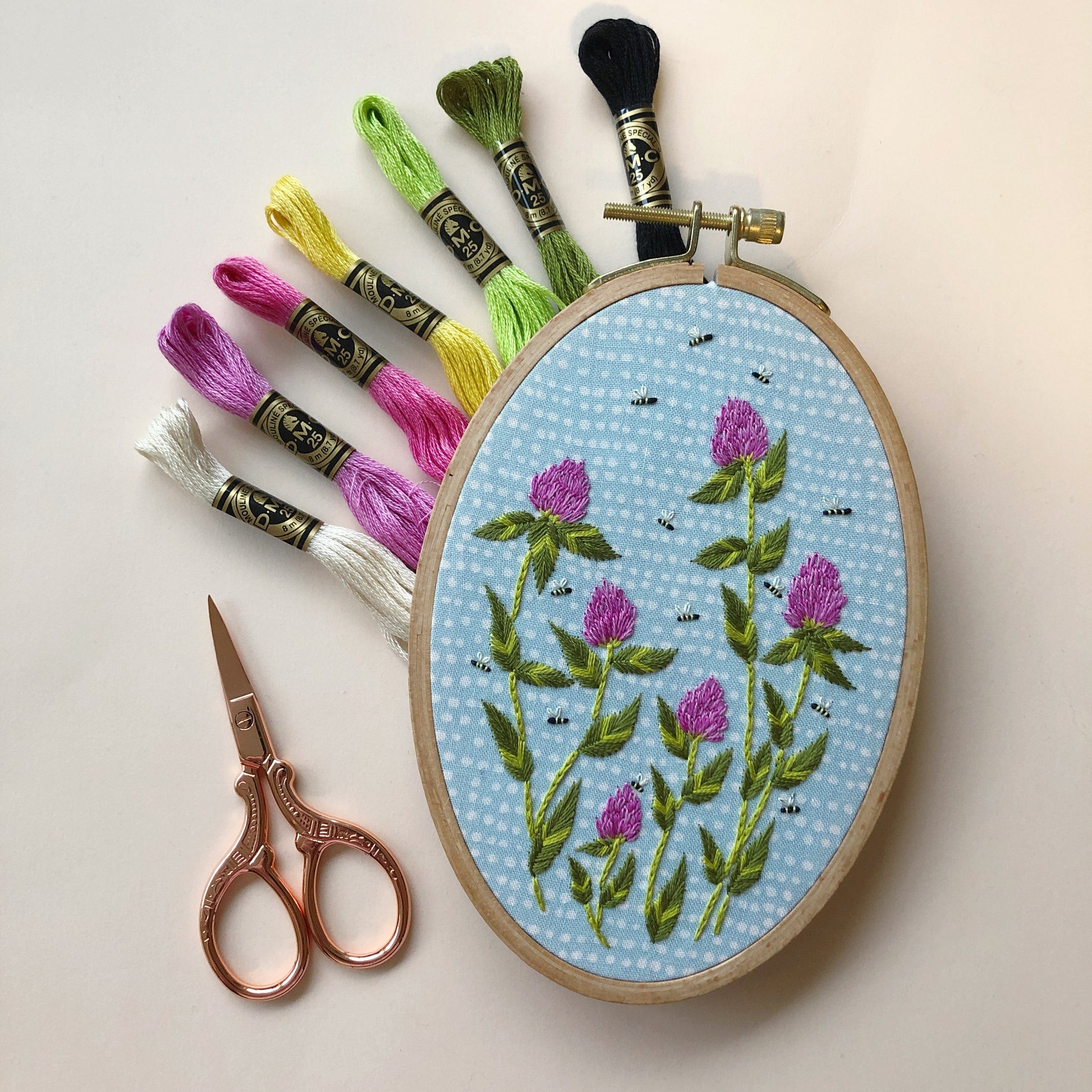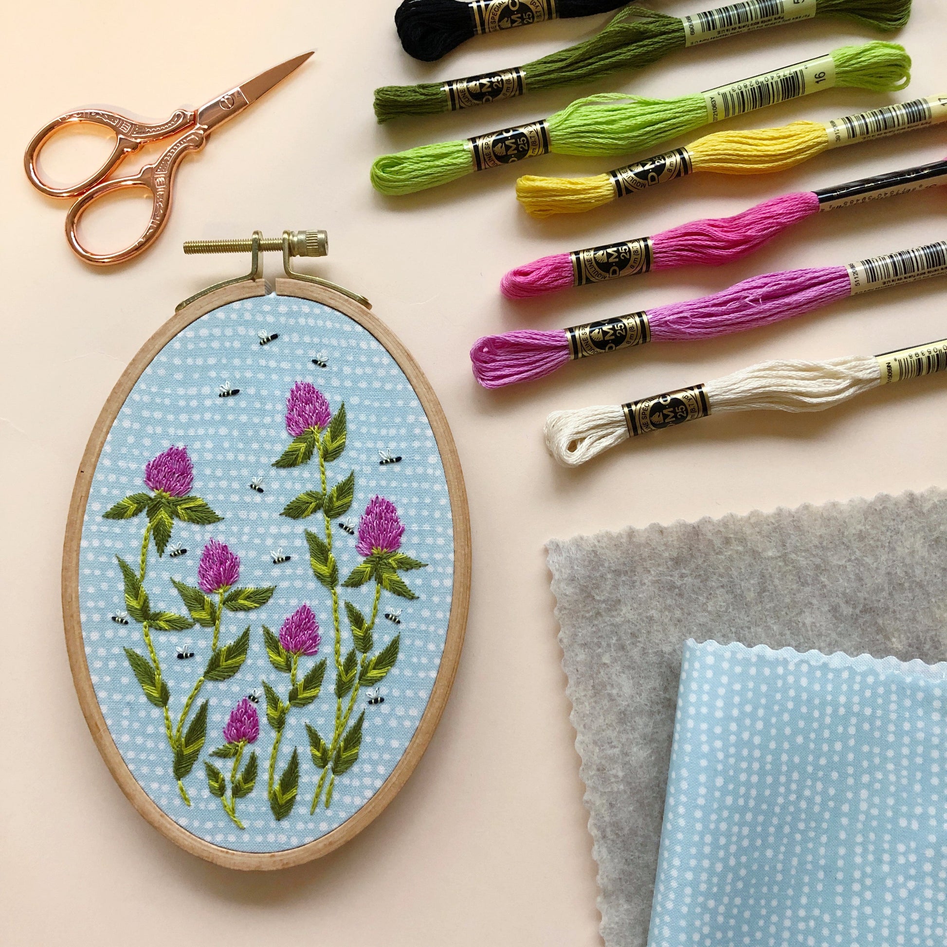 Bees Among Clover - Flower Embroidery Kit for Intermediate Stitchers