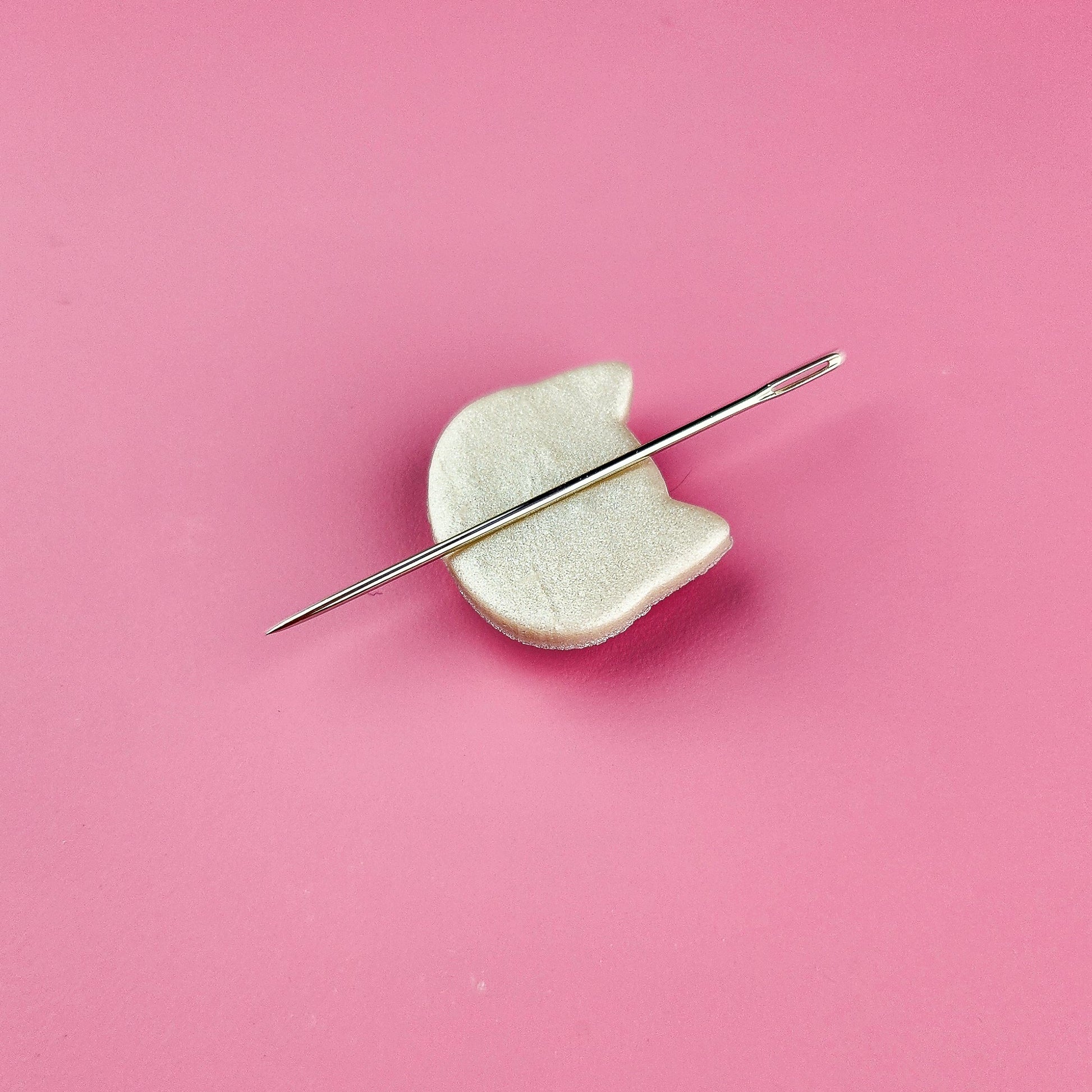 - Handmade clay cat shaped needle minder with the perfect slot for your needle to rest! ($5 value)