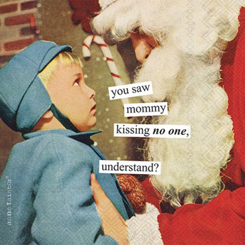 Add a playful twist to your next gathering with these witty cocktail napkins! Featuring the cheeky phrase “You saw mommy kissing no one, understand?”, these premium 3-ply paper napkins are the perfect way to break the ice and get guests laughing.