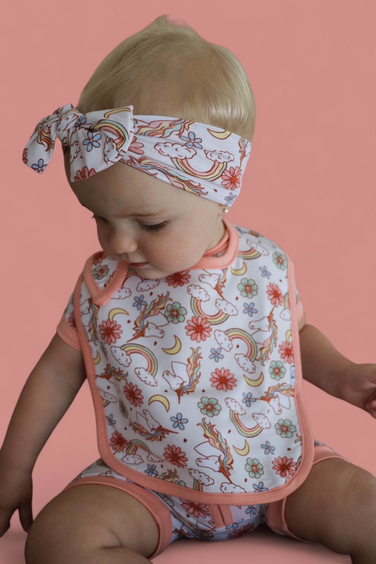 Transform your little one's look with the Exclusive Enchanted Dreams Dream Bow! This delightful accessory brings a touch of whimsy to any outfit with its enchanting design featuring playful rainbows and adorable unicorns. Crafted from the softest and most breathable bamboo viscose, this bow is as gentle on your child’s hair as it is stylish, ensuring all-day comfort and ease.
