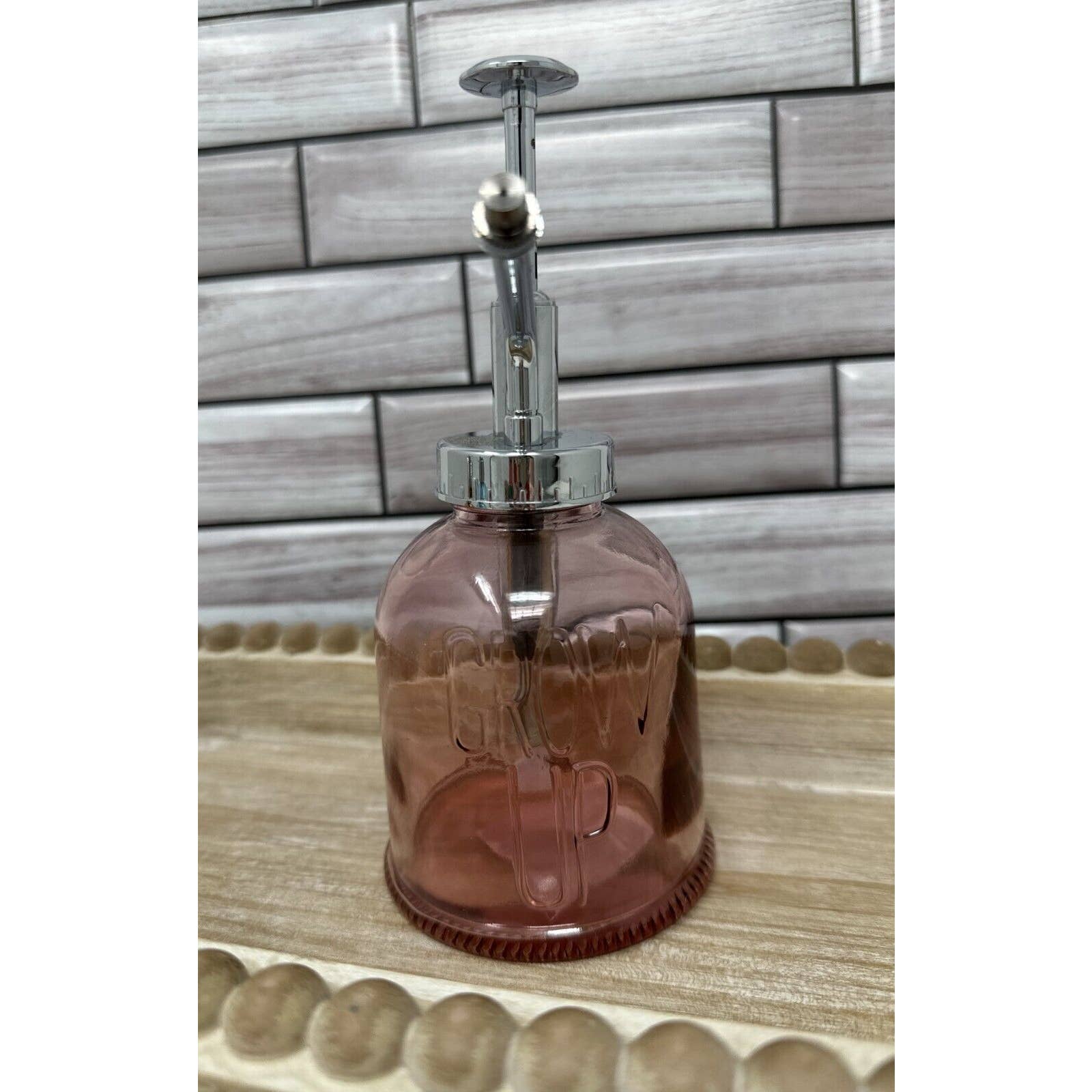 "GROW UP" Pink Rose Colored Glass Garden Water Mister