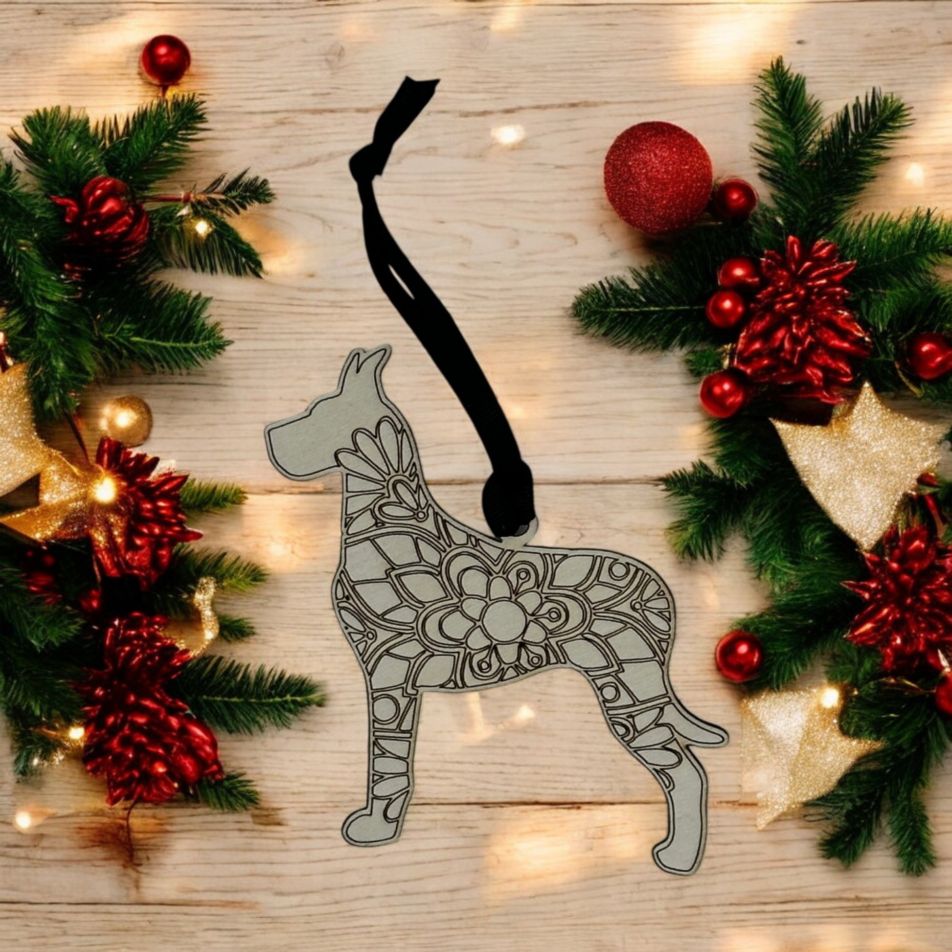 Great Dane Ornament – Handcrafted Wooden Mandala Keepsake