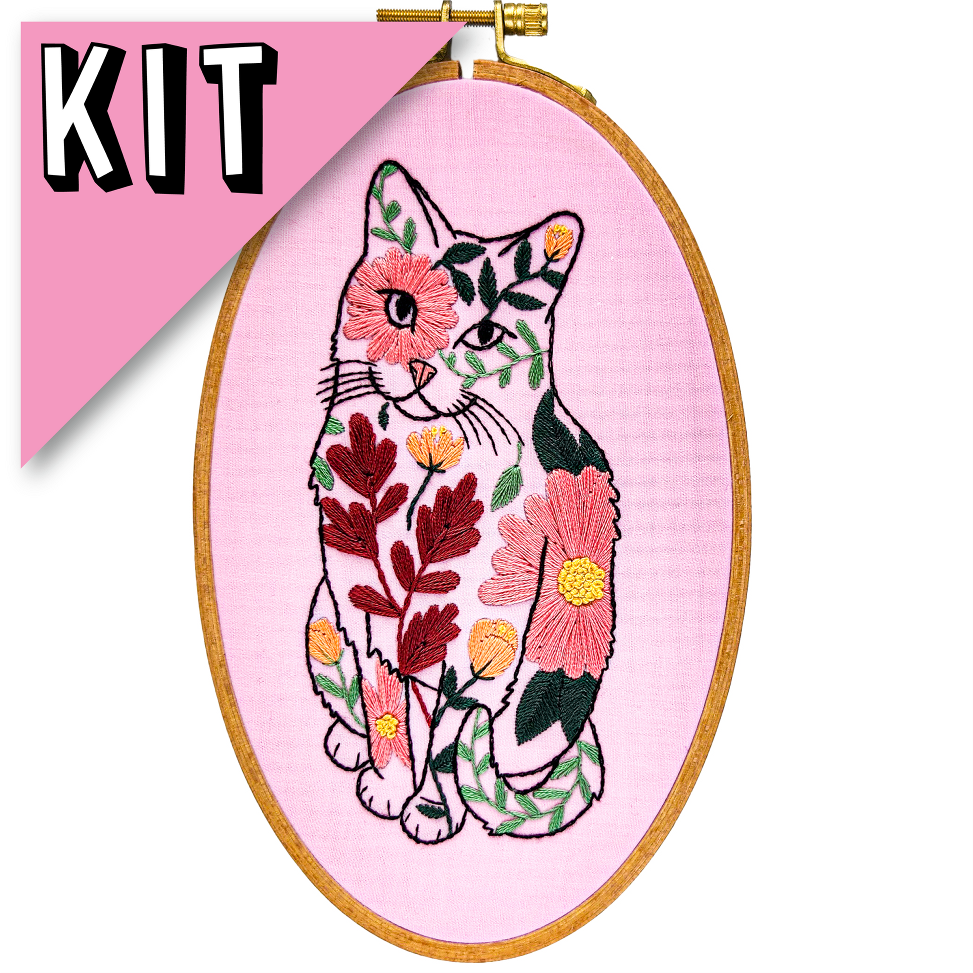 Poppy Flower Cat Embroidery Kit, 8 x 5 in.
