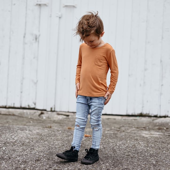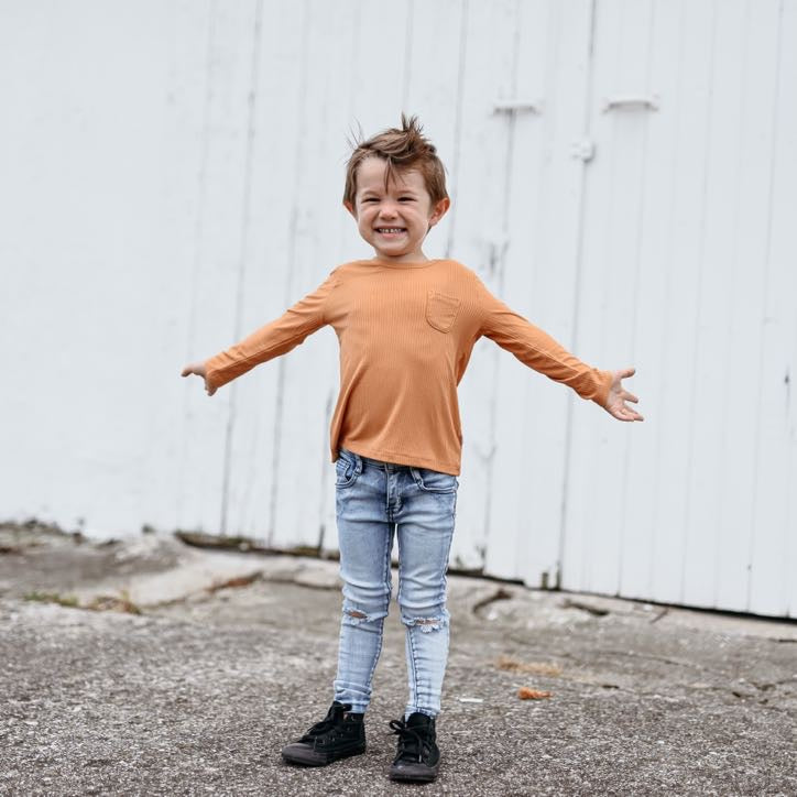Make way for the 'Pumpkin Rib Dream Pocket Tee' - a comfy long-sleeve pocket tee for all your fall adventures! It's ribbed for your pleasure and perfect for day-long wear, making it the ultimate fall wardrobe piece. Live life to the fullest, and 'fall' into the trendiest tee this season!