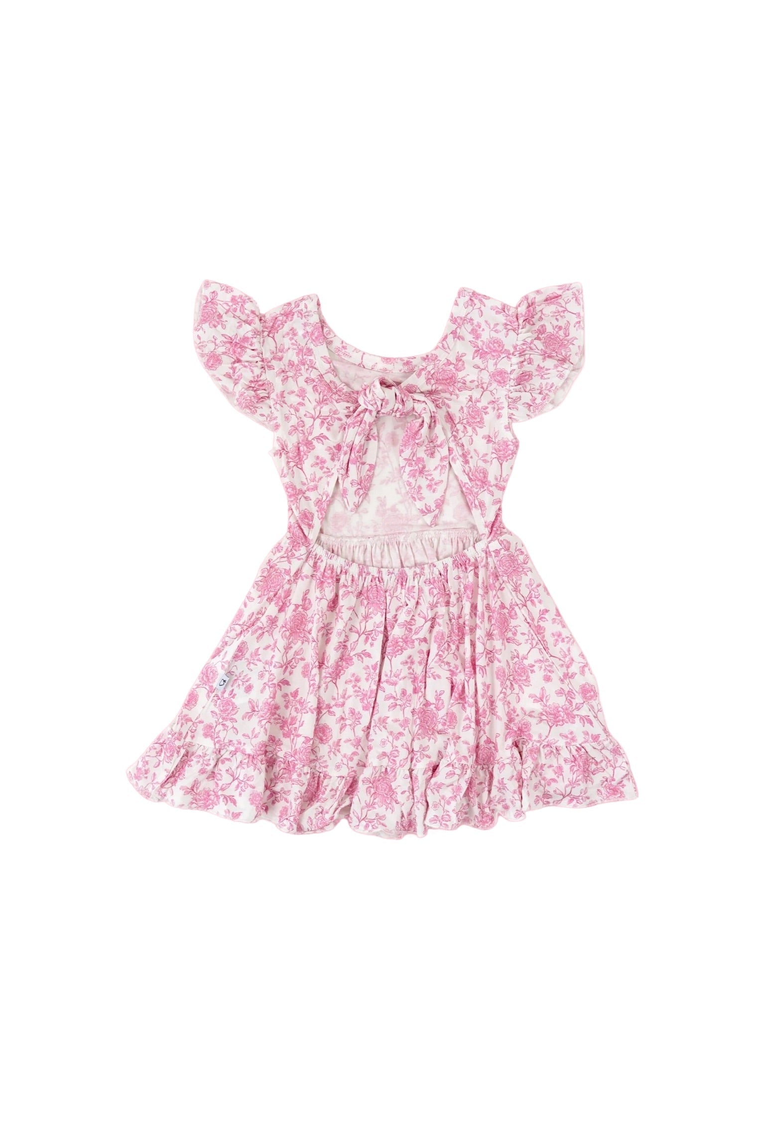 Rosewood Toile Dream Tie Back Ruffle Dress
