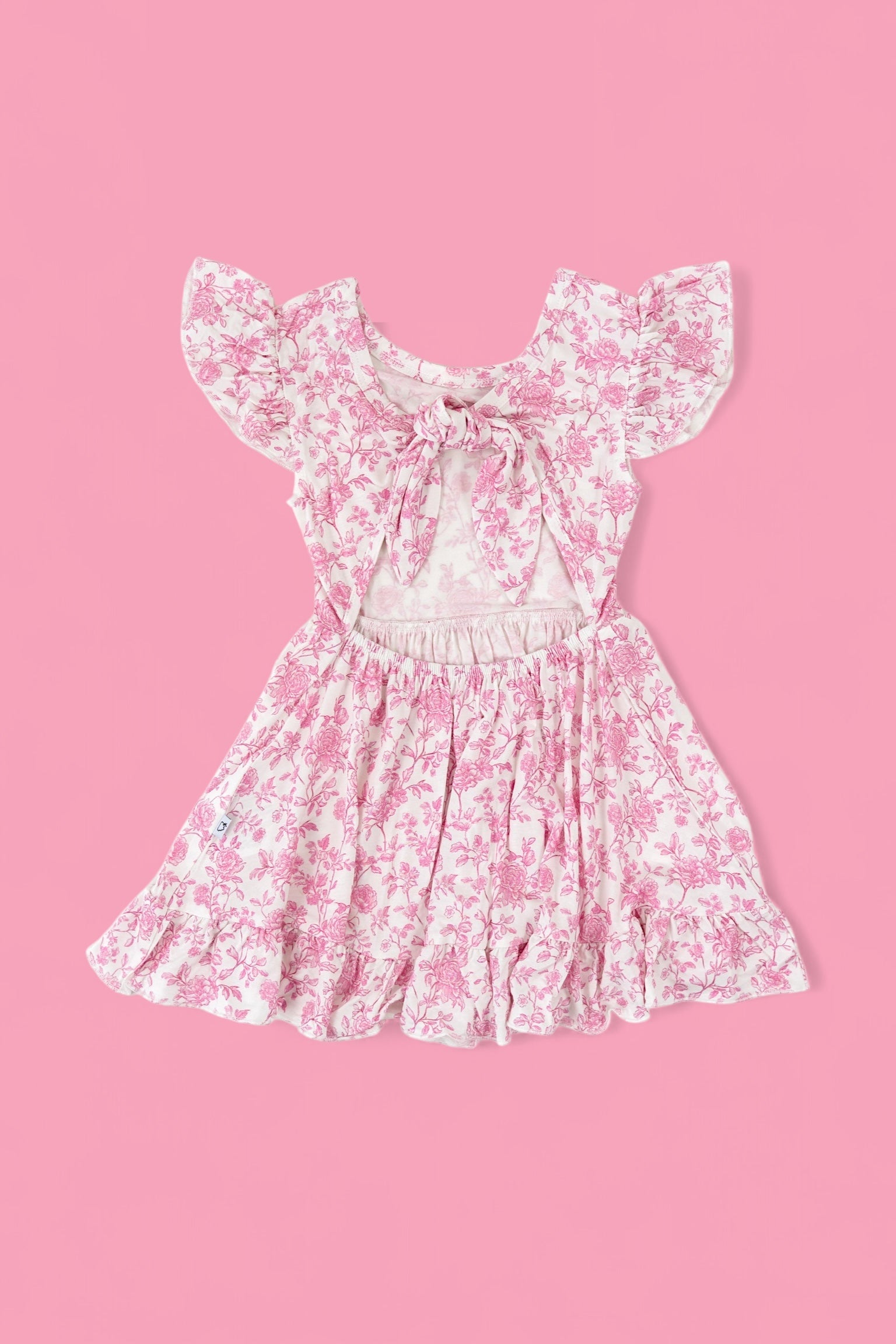 ROSEWOOD TOILE DREAM TIE BACK RUFFLE DRESS