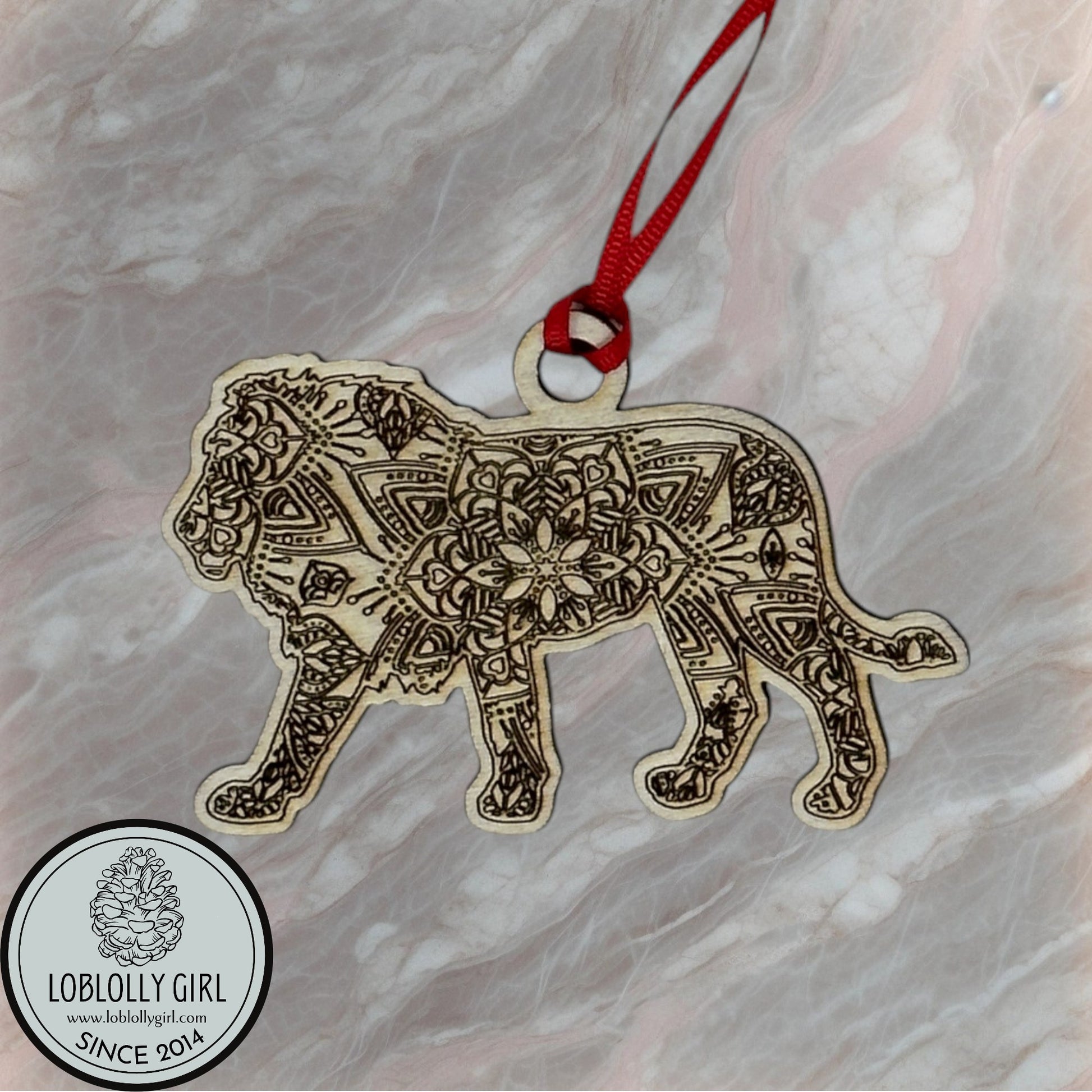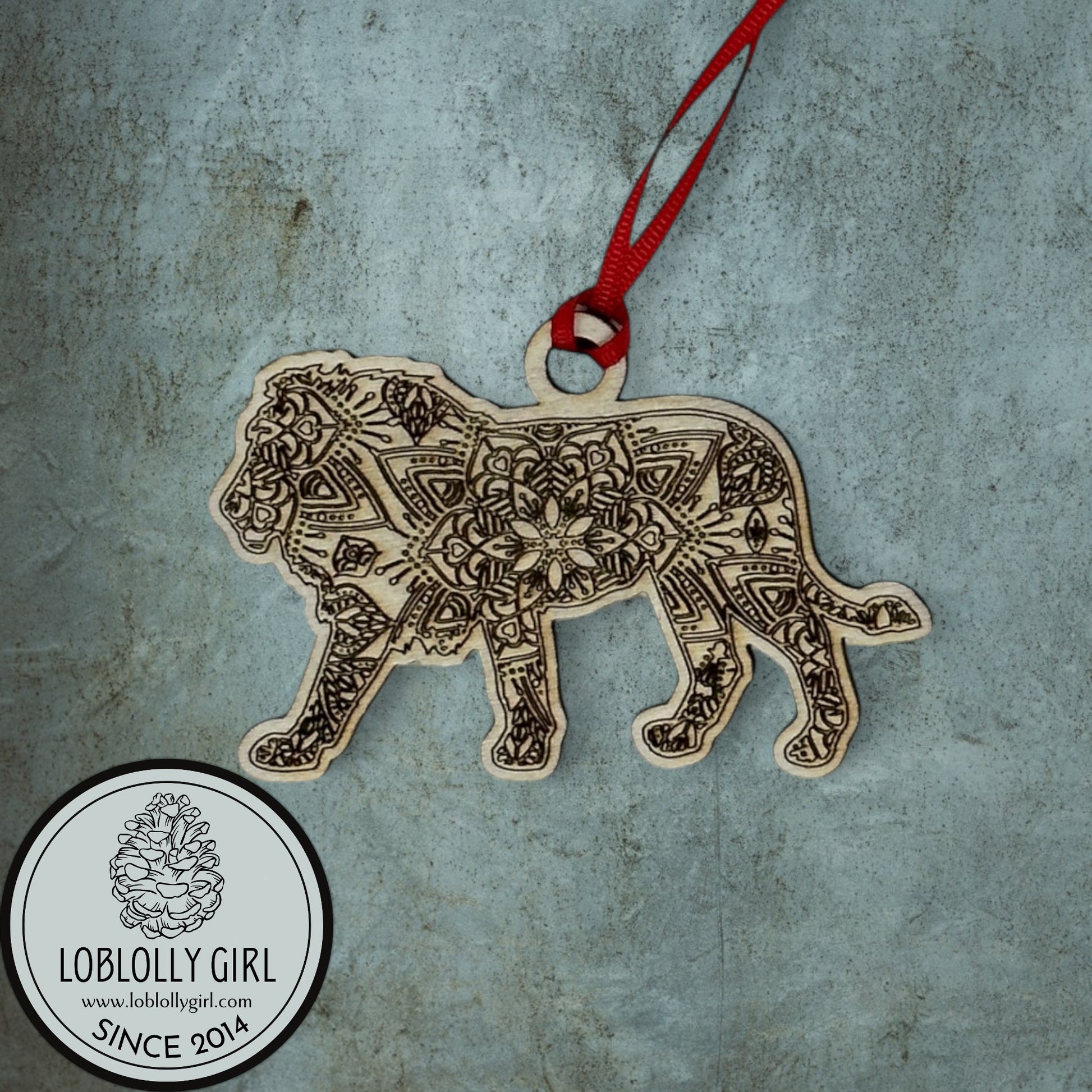 Father Figure: Strong Protective Mandala Wooden Lion Gift, Family Christmas Ornament & Car Charm for Dad
