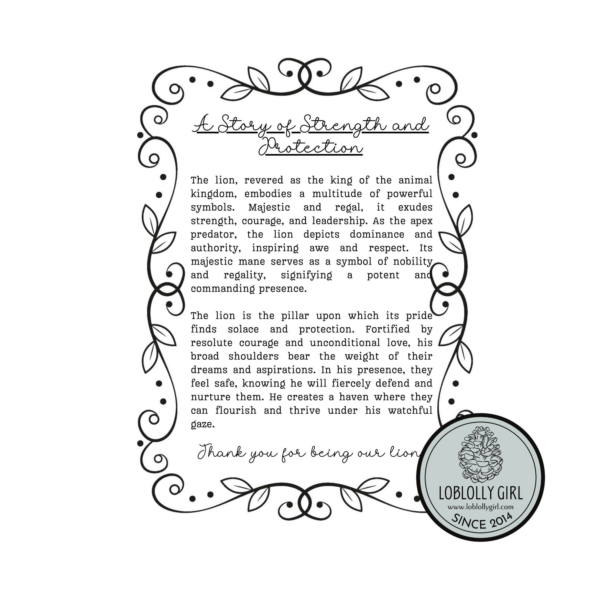 Celebrate strength, courage, and protection with our handcrafted Lion Ornament. Known as the king of the animal kingdom, the lion symbolizes guardianship and unwavering love for family. This ornament makes a meaningful tribute to fathers, grandfathers, uncles, or any father figure who embodies wisdom, strength, and care.