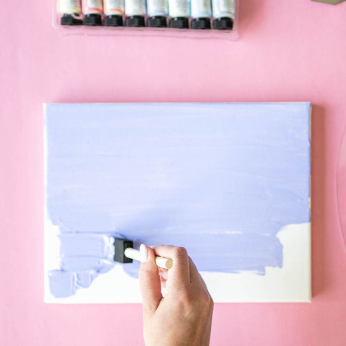This project takes about an hour to complete but may take longer depending on the detail and design of your project. The two canvases are 9 x 12 inches. Having two surfaces to craft with makes this a great activity to do with a friend.