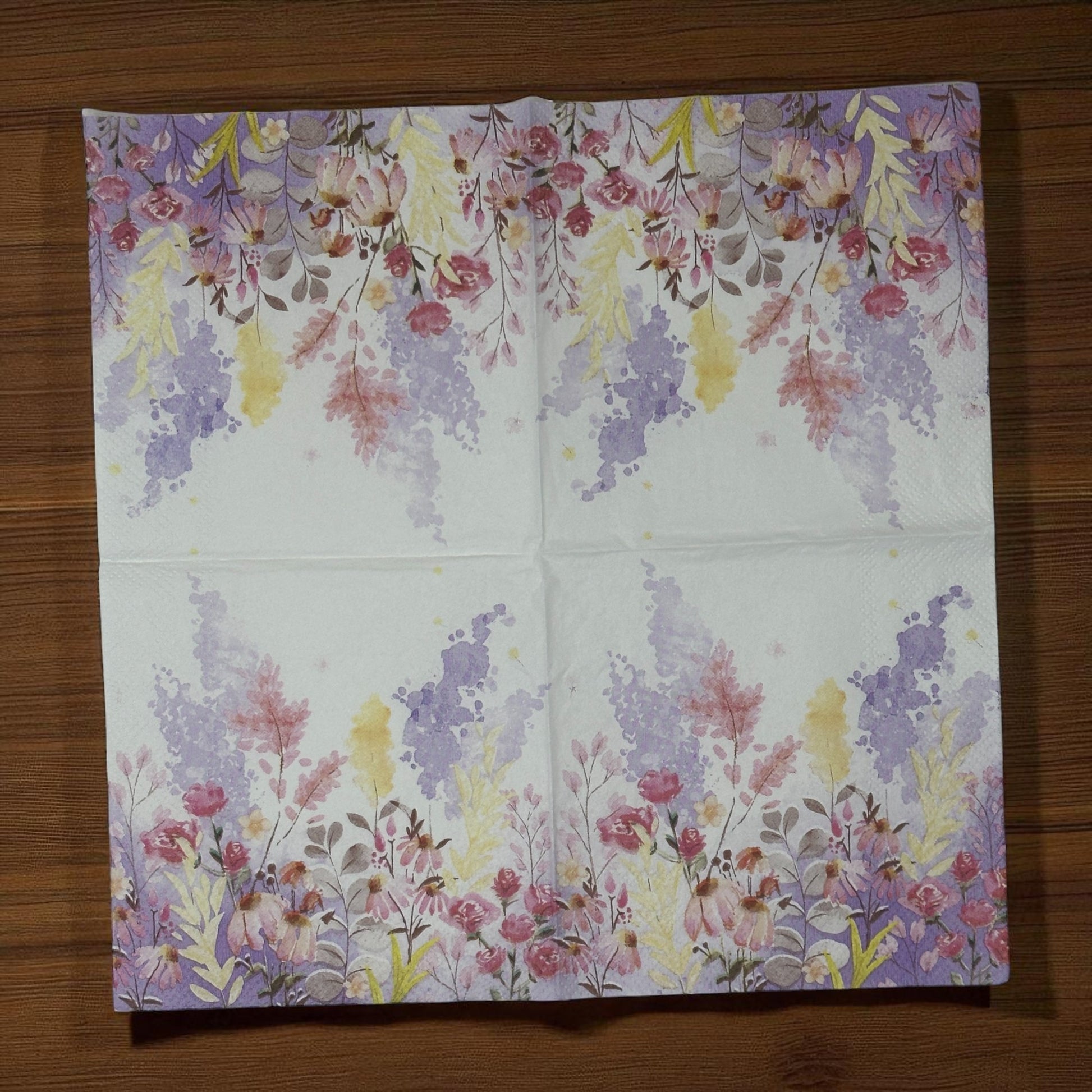 Transform your projects with the delicate beauty of these Watercolor Flower Field decoupage napkins. Featuring a soft meadow of watercolor wildflowers in pink, purple, yellow, and green, these cocktail-size napkins are perfect for spring weddings, floral journals, handmade cards, and DIY décor.